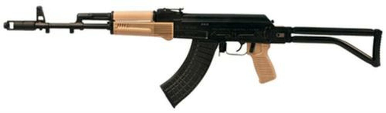 Arsenal’s The SAM7SF-84 is a semi-automatic modern sporting rifle in 7.62x39mm caliber with a forged and milled receiver, a hot-die hammer-forged bolt, bolt carrier group, and trigger group. The 16.25″ chrome-lined, hammer-forged barrel has a removable AK47 design one-piece muzzle brake with 21×1.5mm right-hand threads. It has a reinforced polymer stock set with a stainless steel heat shield inside the lower handguard, beefed up pistol grip, and a right-side folding tubular buttstock. It has an ambidextrous safety, bayonet and an accessory lugs, AK scope rail, and an 800m rear sight. The right-folding stock allows optics to remain mounted and the safety lever operational when folded. This model has SAM7SF-84D has Desert Sand colored furniture (upper and lower handguard, pistol grip). It ships with one 10-round mil-spec Bulgarian Arsenal magazine, sling, cleaning rod, oil bottle, and cleaning kit.