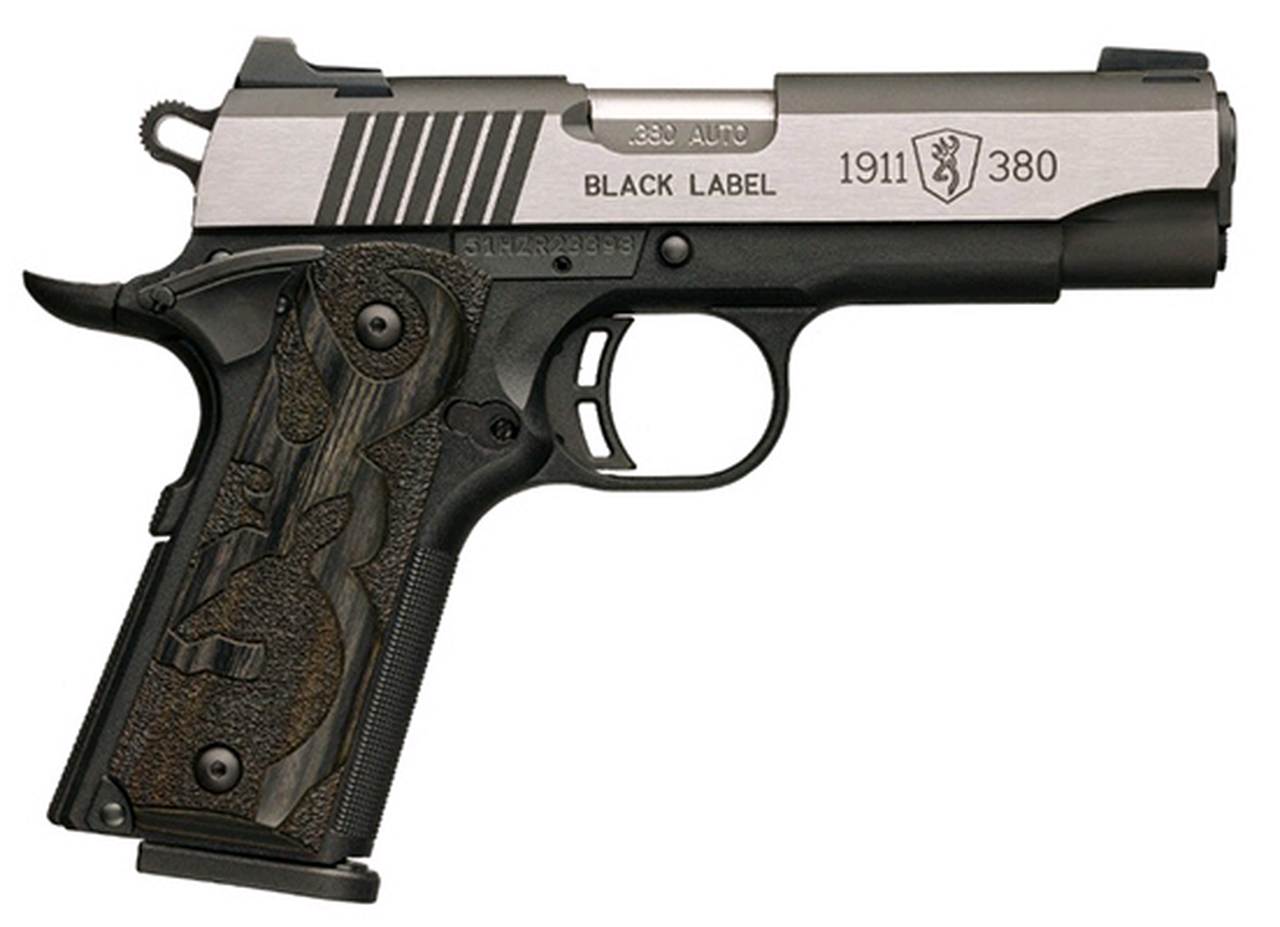 Browning 1911 380ACP, Black/Blued, Med Pro, 3.58″, Night Sights, Laminated