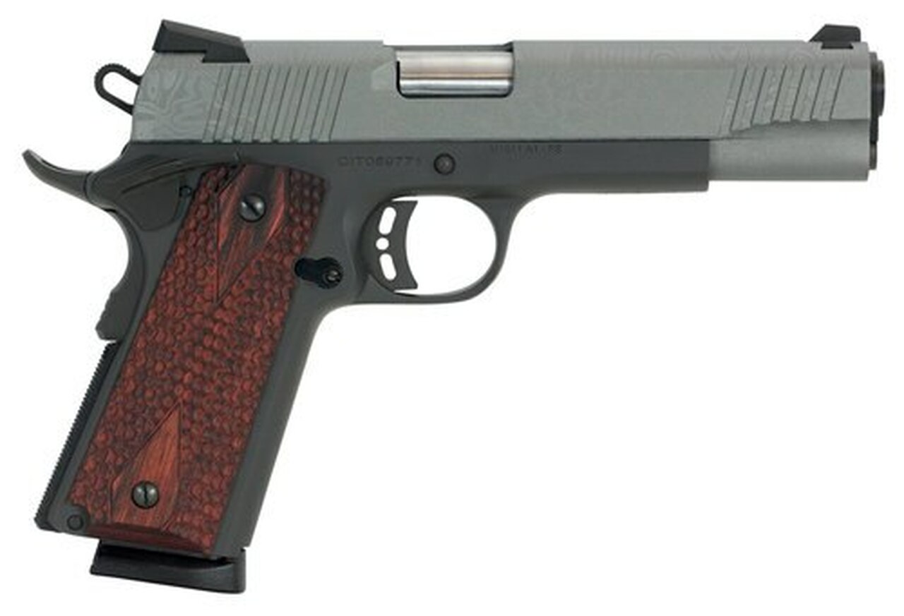 The Citadel 1911 Government is available in both .45ACP as well as 9MM. The Citadel 1911 Laser Etched Madagascar Pistol is finished with a custom gray Cerakote and a laser etched Damascus pattern across the slide. In addition to the textured etching on the slide, the grips showcase a redwood pattern that contrasts the gray Cerakote. The newest addition to the Citadel 1911 Government Line displays the craftsmanship of laser etching and a tough Cerakote finish.Type : Pistol
