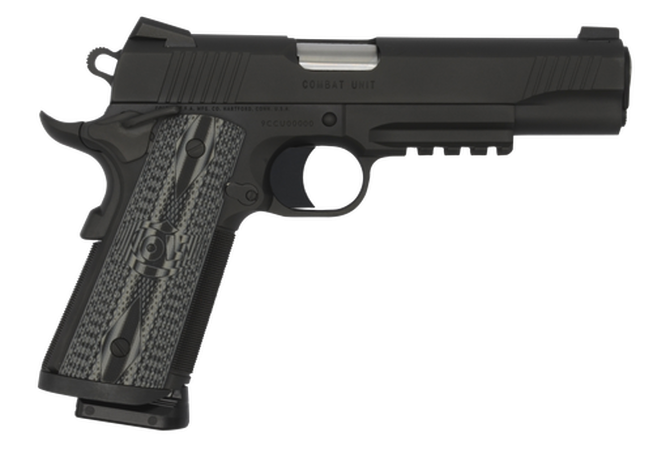 The Colt Government 9mm Luger has a 5″ barrel and features an ambidextrous extended thumb safety, Novak front and rear sights, and a steel frame/ G10 checkered gray w/scallop grips. It also features TALO/series 80 extended magwell, and is offered with two, eight round magazines. This version also features a M1913 spec picatinny rail, and beavertail grip safety.Action : SingleCaliber : 9mm LugerBarrel Length : 5″Capacity : 9+1Safety : Ambidextrous Manual/GripGrips : Gray G10 Checkered w/ScallopSight Configuration : Novak Front/RearFrame Finish : Black