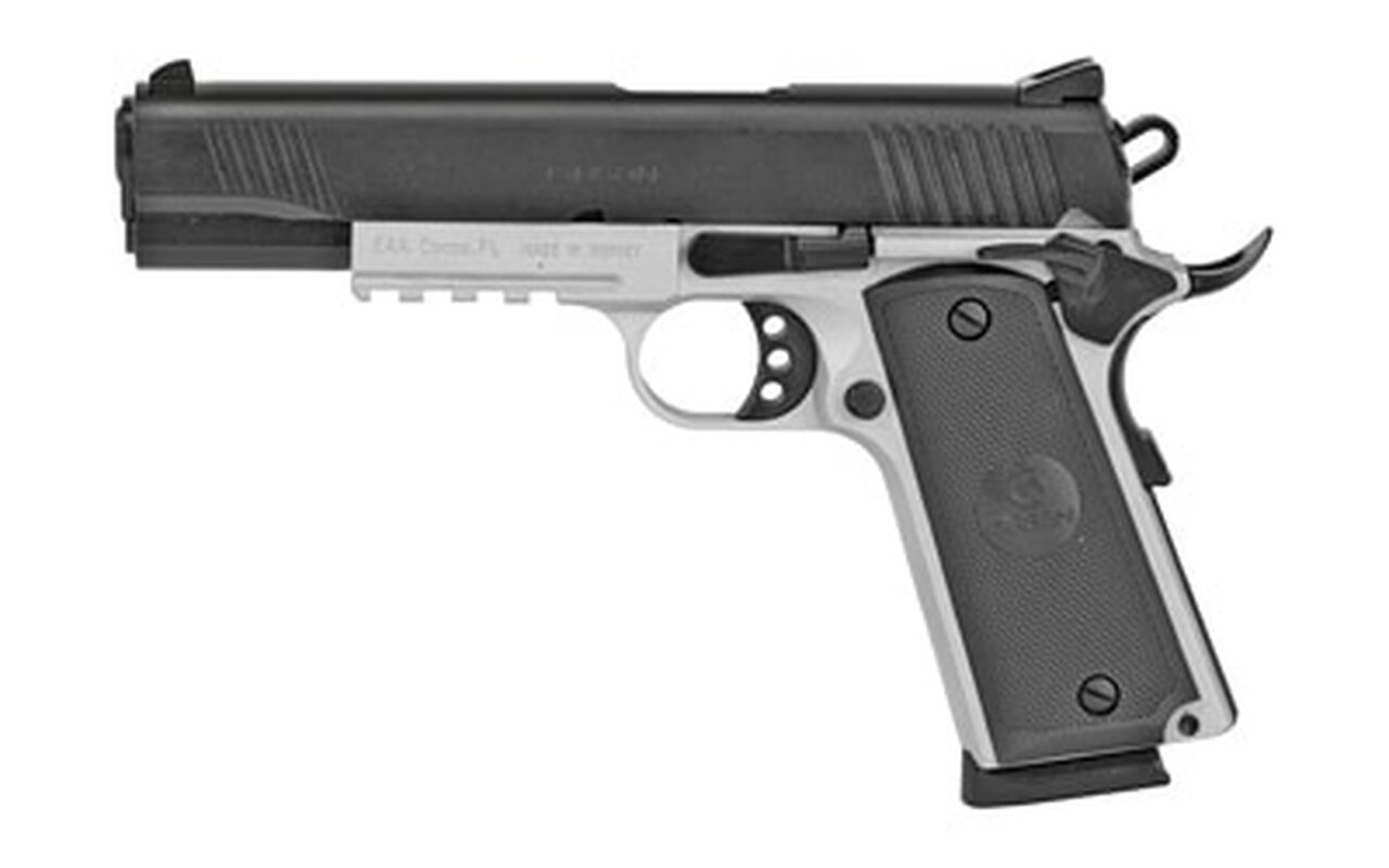 Girsan, MC1911S, Semi-automatic, 1911, Full Size, 45ACP, 5″ Barrel, Steel Frame, Two-Tone Finish, Synthetic Grips, Extended Beavertail, Accessory Rail, Fixed Novak Sights, 8RdManufacturer Girsan