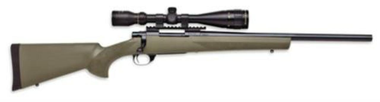 Features a Hogue Overmolded stock, two-stage match trigger and three position safety. Forged, one-piece bolt with two locking lugs. Twenty” contour barrel with blued finish. One piece scope rail. Scope package includes a Nikko Stirling 4-16x44mm GameKing riflescope with duplex reticle, one piece scope base and rings. Matte black scope finish. Scope is waterproof and shockproof.Barrel Length : 20Caliber : .223 Rem.Capacity : 5Stock : GreenFinish : BlueItem Description : LEG GKING CMBO 223 2OHB GRN 5