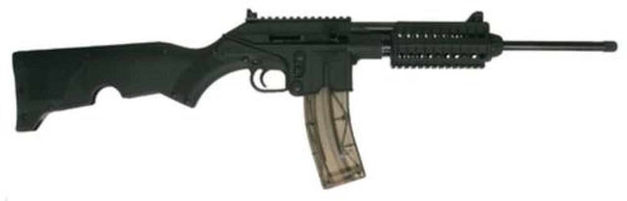 semi-transparent magazine is included.Category : Tactical RiflesAction : Semi-AutomaticCaliber : 22 Long RifleBarrel Length : 16.1″Capacity : 26+1Trigger : StandardSafety : CrossboltOAL : 34″Weight : 4 lbsStock Description : Synthetic BlackMetal Finish : Black