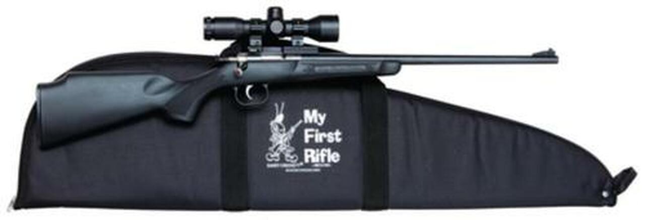 Bolt action single shot rifles. Peep sight. Drilled and tapped for scope mounts. Two and one half pound trigger pull. Youth models length of pull is 11 1/2 inches and overall length is 30 inches. Package includes scope, mount and rifle case.