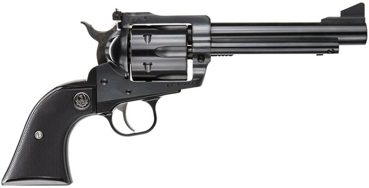 Ruger’s Blackhawk revolver meets the needs of today’s single-action shooters. The patented transfer bar mechanism and loading gate interlock provide an unparalleled measure of security against accidental discharge. Its cold hammer-forged barrel results in ultra-precise rifling that provides exceptional accuracy, longevity and easy cleaning. The Blackhawk also has ramp front and adjustable rear sights along with traditional western-style, hand-filling grip.The Convertible model features two cylinders that can be interchanged without the use of tools.This model has a 5.5″ barrel with a blued metal finish and a black rubber grip. It includes a 45 Colt cylinder and a 45 ACP cylinder.Category : RevolversType : RevolverAction : SingleCaliber : 45 Automatic Colt Pistol (ACP)Barrel Length : 5.5″Capacity : 6Hammer Style : SpurredGrips : Black RubberSights : AdjustableWeight : 39 ozFrame Description : Blued