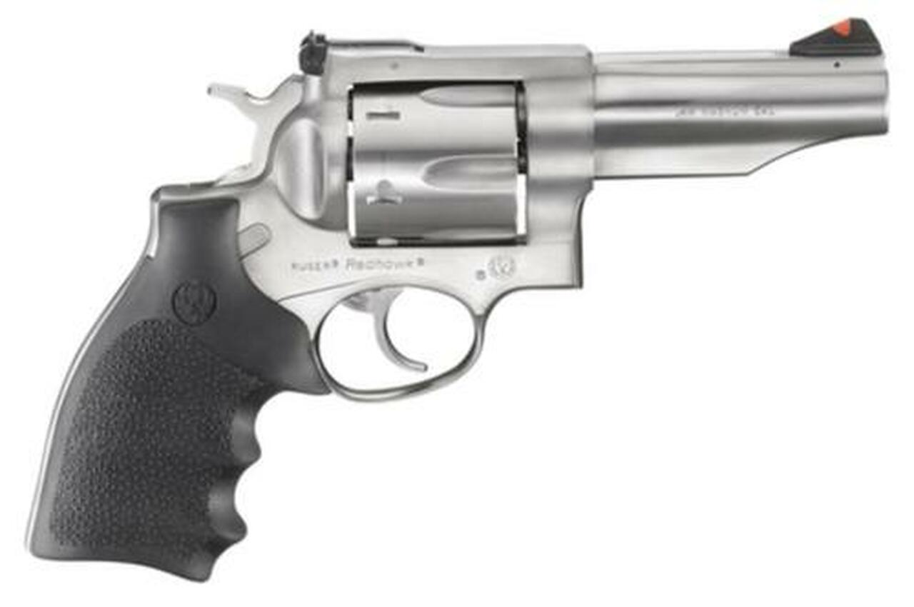 DUAL CHAMBERING for .44 Magnum models, which also accept all factory .44 Special cartridges.Category : RevolversType : RevolverAction : Single/DoubleCaliber : 44 Remington MagnumBarrel Length : 4.0″Capacity : 6Hammer Style : SpurredGrips : Hogue Monogrip BlackSights : Ramp Front, Adjustable RearWeight : 46 ozFrame Description : Stainless
