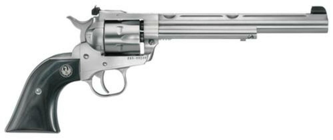 Single-Ten models feature a ten-round capacity and Gunfighter style grips. Convertible models come with two cylinders (one in .22 LR and one in .22 Magnum) for increased versatility. Hunter models are equipped with an integral barrel rib for rigid mounting of Ruger scope rings (supplied at no extra charge).Category : RevolversType : RevolverAction : SingleCaliber : 22 Long Rifle/22 Winchester Magnum Rimfire (WMR)Barrel Length : 7.5″Capacity : 6Hammer Style : SpurredGrips : Black Laminated WoodSights : Adjustable RearWeight : 45 ozFrame Description : Stainless