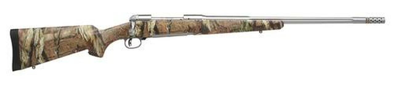 Model 16 Weather Warrior Bear Hunter .338 Federal 23″ Stainless Steel Barrel Satin Finish Adjustable Muzzle Brake Synthetic AccuStock Camouflage Finish 4 Rounds Stainless steel barrel with satin finish, Synthetic AccuStock with matte camouflage finish, and hinged floorplate. Adjustable muzzle brake. AccuTrigger. Drilled and tapped for scope mounts. Short action.Category : Rifles CenterfireAction : BoltCaliber : 338 FederalBarrel Length : 23″Capacity : 4+1Trigger : AccuTriggerSafety : Three PositionOAL : 44.25″Weight : 7.75 lbsStock Description : Synthetic Mossy Oak Break-Up InfinityMetal Finish : Stainless Steel