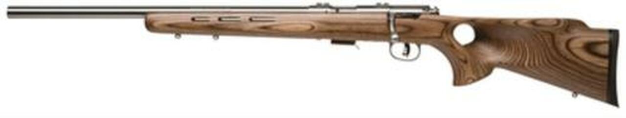 The 17 Series of bolt action rifles helps heighten the fun of rimfire shooting while maintaining Savage standards of meticulous crafting with the balance of modern, high-tech methods and old-world hand craftsmanship. The BTVLSS, for left-handed shooters, comes with the built-in adjustability and safety of AccuTrigger, so there’s no need for a gunsmith to modify it. AccuTrigger also provides a crisp, clean trigger pull, which enhances accuracy. The BTVLSS features a stainless steel heavy varmint barrel and detachable box magazine set in a thumbhole stock with a natural wood-grained laminate finish and a Monte Carlo-style comb. Every 17 series model provides tack-driving accuracy powerful enough for dispatching small game and varmints.Category : RiflesAction : BoltCaliber : 17 Hornady Magnum Rimfire (HMR)Barrel Length : 21.0″Capacity : 5+1Trigger : AccutriggerSafety : Manual ThumbOAL : 40.25″Weight : 6 lbsStock Description : Laminate Thumbhole BrownMetal Finish : Stainless Steel