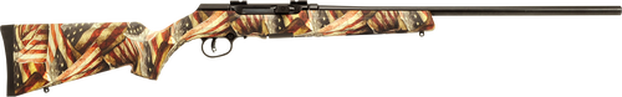 Savage A17 .17 HMR, 22″ Barrel, American Flag Synthetic Stock, Black, 10rd