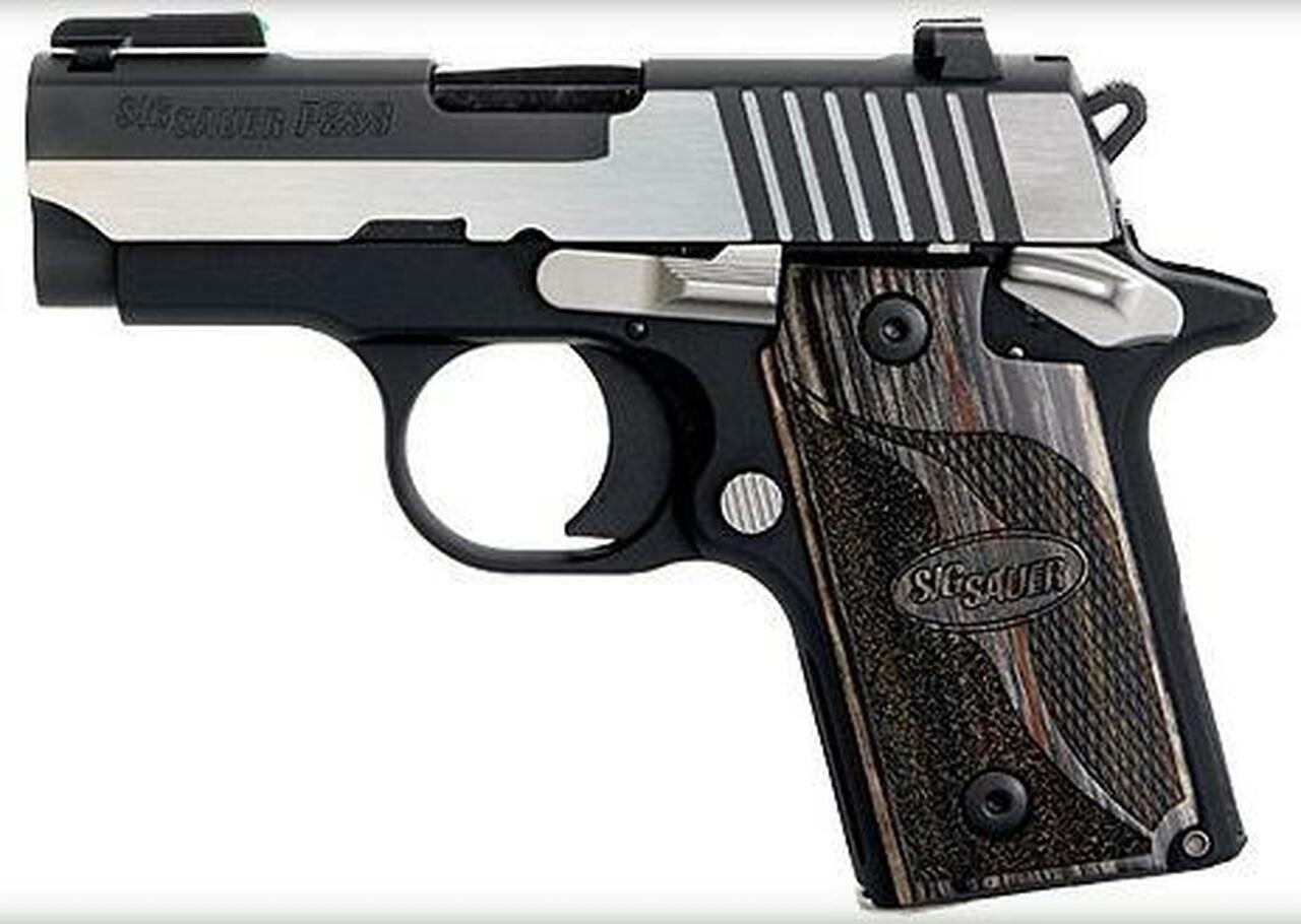 The P238 Equinox®, it’s just a fraction of the size of our ful-size pistols. A smart looking, small handgun built with the same accuracy and reliability as large frame SIG SAUER pistols. With an overall length of just 5.5 inches a height of 3.96 inches, and weighing just 15.2 ounces, the SIG SAUER P238 is the ultimate firepower in an all metal frame concealed pistol. The P238 is built on an anodized alloy beavertail style frame with wood grips for comfort and a secure hold during rapid-fire usage. The stainless steel slide features the popular trademarked SIG SAUER slide serrations, corrosion resistant Nitron finish and SIGLITE® Night Sights. The new SIG SAUER P238 is shipped in a lockable hard case and one 6 round magazine.Category : PistolsType : PistolAction : SingleCaliber : 380 Automatic Colt Pistol (ACP)Barrel Length : 2.7″Capacity : 6+1Safety : Manual ThumbGrips : WoodSights : Fiber Optic Front, Siglite Night RearWeight : 15.2 ozFrame Finish : Black