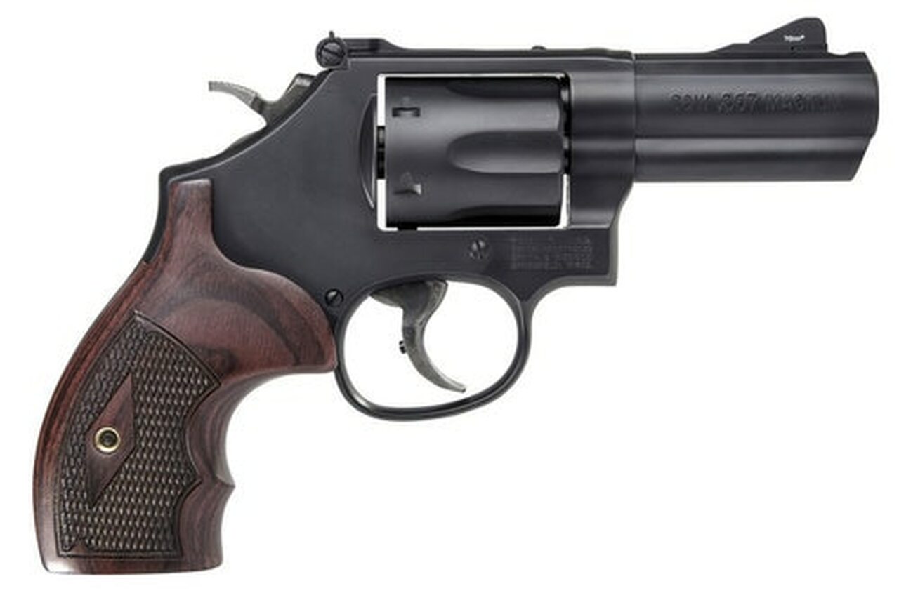 The Performance Center Model 19 Carry Comp is designed for concealed carry and includes a tritium front night sight, custom wood and synthetic boot grips, and a 3 PowerPort vented barrel for recoil management. The revolver features a trigger overtravel stop and Performance Center tuned action for a smooth double-action and light single action trigger pull.Type : RevolverAction : SA/DACaliber : 357 MagBarrel Length : 3.00″Capacity : 6Hammer Style : ExposedGrips : WoodSights : Tritium Night Front/Adj RearWeight : 34.10 ozFrame Description : Black Carbon Steel