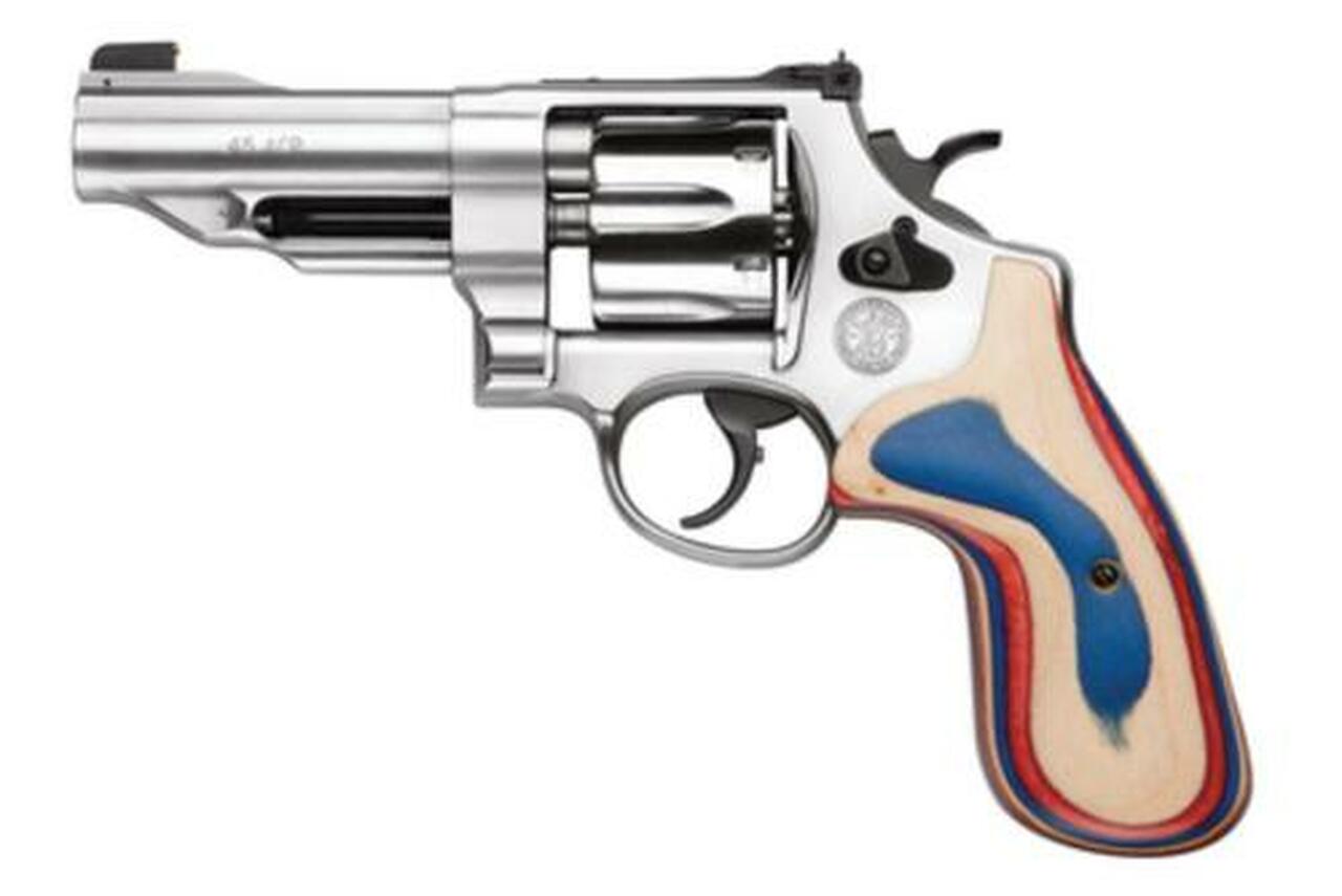 Smith & Wesson’s large frame revolvers are the first choice for handgun hunters and competitive shooters. These stainless steel revolvers are available in .45 ACP with a 4″ barrel length. Among the large frames is the Model 625. The 625 Performance Center features double /single action, 6 round capacity, stainless steel frame, gold bead front sight and Red, White, and blue grips laminated.Category : RevolversType : RevolverAction : Single/DoubleCaliber : 45 Automatic Colt Pistol (ACP)Barrel Length : 4.0″Capacity : 6Hammer Style : SpurredGrips : Altamont Red, White, Blue LaminateSights : Gold Bead Front, Adjustable RearWeight : 42 ozFrame Description : Stainless