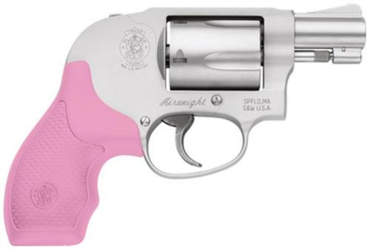 Synthetic pink grips with black grips included. J-Small frame. Integral front sight. Fixed notch rear sight. Single/double action. Shrouded hammer. Matte silver finish. Aluminum alloy frame. Stainless steel cylinder.Category : RevolversType : RevolverAction : Single/DoubleCaliber : 38 SpecialBarrel Length : 1.9″Capacity : 5Hammer Style : ShroudedGrips : Pink RubberSights : FixedWeight : 15.1 ozFrame Description : Silver