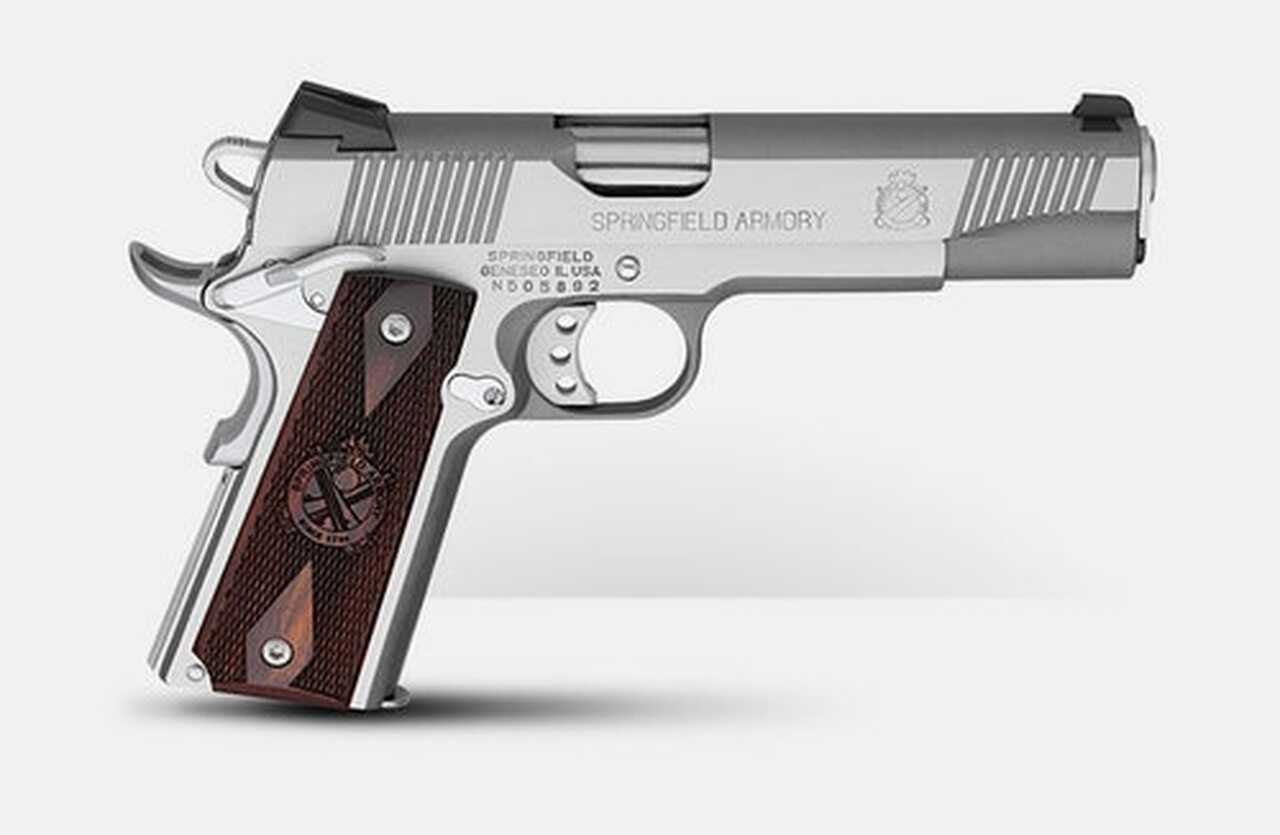 Springfield Armory’s Loaded pistol features an extended ambidextrous thumb safety, beavertail grip safety, lightweight delta hammer, and an extended trigger enhance handling and performance in any situation. This model has a black parkerized carbon steel slide and frame, and Cross Cannon double diamond Cocobolo grip. Its barrel is a 5″ stainless steel match grade with a low profile combat, 3-Dot Tritium sight.Caliber .45 ACP