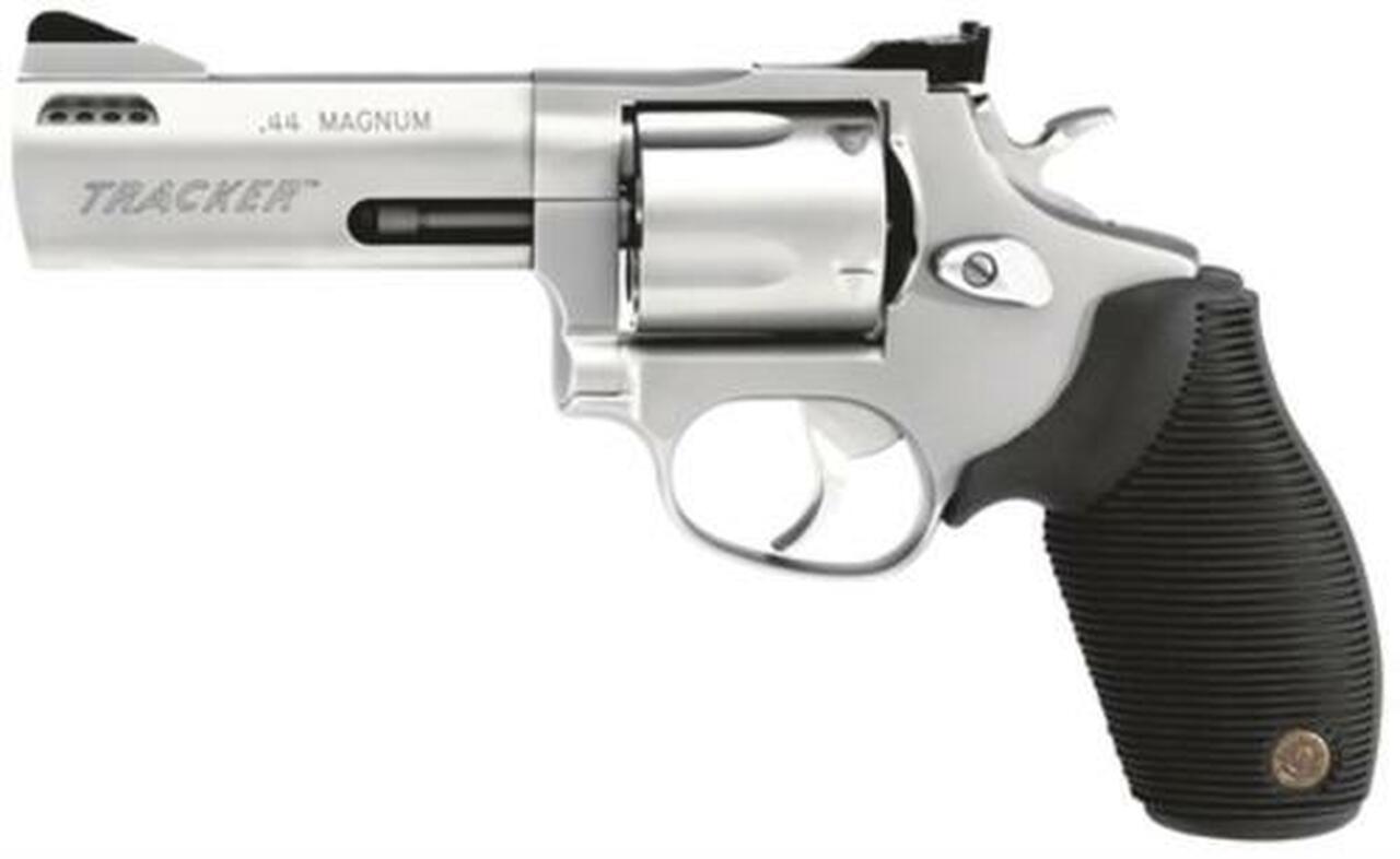 Taurus, Model 44, Tracker, Large Frame, 44 Magnum, 4″ Barrel, Stainless Frame, Stainless Finish, Rubber Grips, Adjustable Sights, 5RdCategory : RevolversType : RevolverAction : Single/DoubleCaliber : 44 Remington MagnumBarrel Length : 4.0″Capacity : 5Hammer Style : SpurredGrips : Black RibberSights : Fixed Front, Adjustable RearWeight : 34 ozFrame Description : Stainless