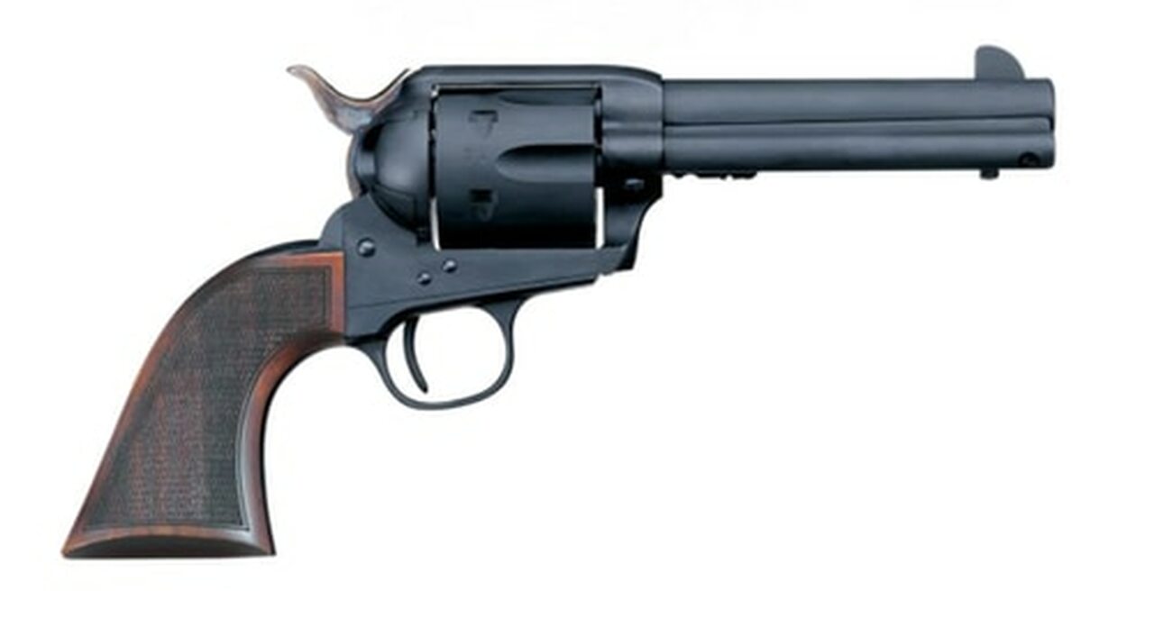 The single-action Army was most widely produced with a color case-hardened frame and blued barrel. Meanwhile, a nickel-plated version was issued to Indian scouts. And a bright charcoal blue finish was available from the factory. But with years of use, the old 6-guns took on a well-handled soft gray patina. All of these classic finishes are available in the 1873 Cattleman.Overall Length: 11″