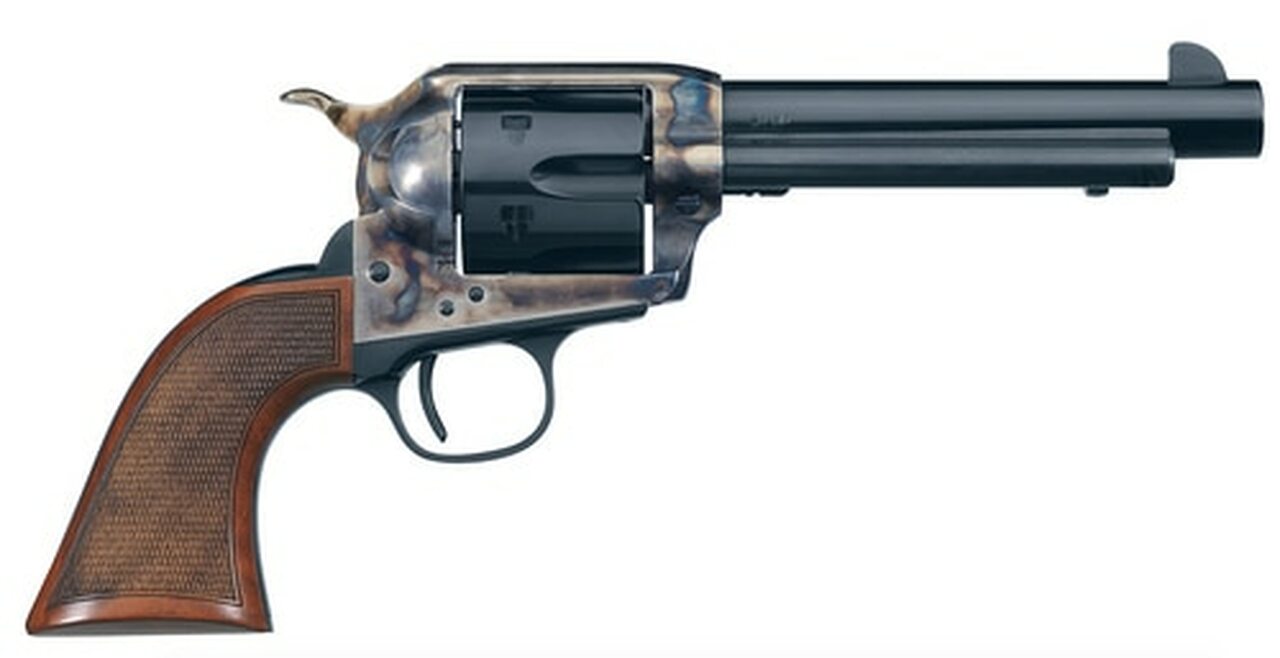 The CMS Pro comes in .45 LC and with a 3 ½” barrel. The SASS Pro is available in two barrel lengths (4 ¾” and 5 ½”) and two calibers (.45 LC and .357 Mag). Blued, Case-Hardened Frame