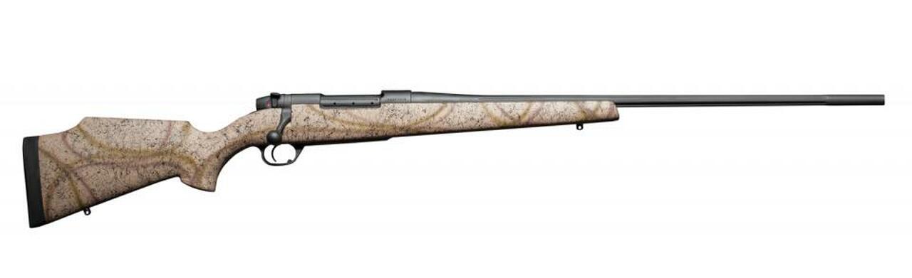 Weatherby is the name to trust when it comes to modern hunting rifles. This Mark V Outfitter rifle embodies all that you would want in a high end extreme weather rifle. Built off of the proven performance of ‘the world’s strongest bolt action” with the Weatherby SUB-MOA guarantee this all weather hunting rifle is sure to impress! The raised comb Monte Carlo stock is crafted from a hand laminated synthetic composite that will laugh off the coldest and wettest conditions. It features a full length aluminum bedding block and a fully adjustable match quality LXX trigger. The High Desert camo stock sports spiderweb camo accents with a matte gel coat finish and the metal work is finished in “armor black” Cerakote to complete the look and protect your investment. If you need a modern rifle with legendary accuracy for the worst mother nature has to offer, then the Weatherby Mark V Outfitter is the rifle you’re looking for.Specifications and features: