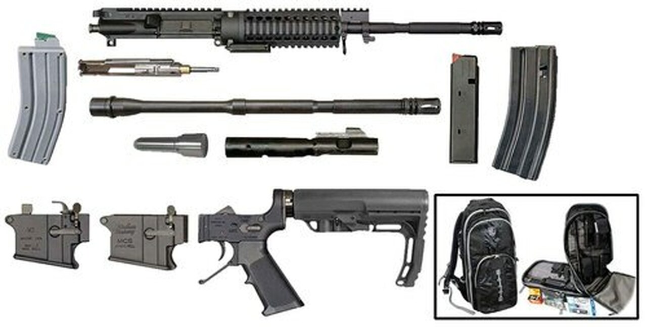 Windham’s Rifle Kit features components of the MCS (Multi-Caliber System) and have been configured into an easily carried back-pack survival system for those wanting to take it a field, or keep handy for survival scenarios. It includes the MCS Upper & Lower components for .223/5.56mm caliber, 9mm and .22LR caliber, as well as emergency gear such as a space blanket, water filtration kit, sewing, fishing and fire starting gear – all packed into a quality, multi-layer, compartmented 500 Denier nylon backpack.Category : Firearm PartsType : Rifle KitModel : AR StyleSize : 223Rem/22LR/9mmMaterial : Steel/AluminumFinish : Black